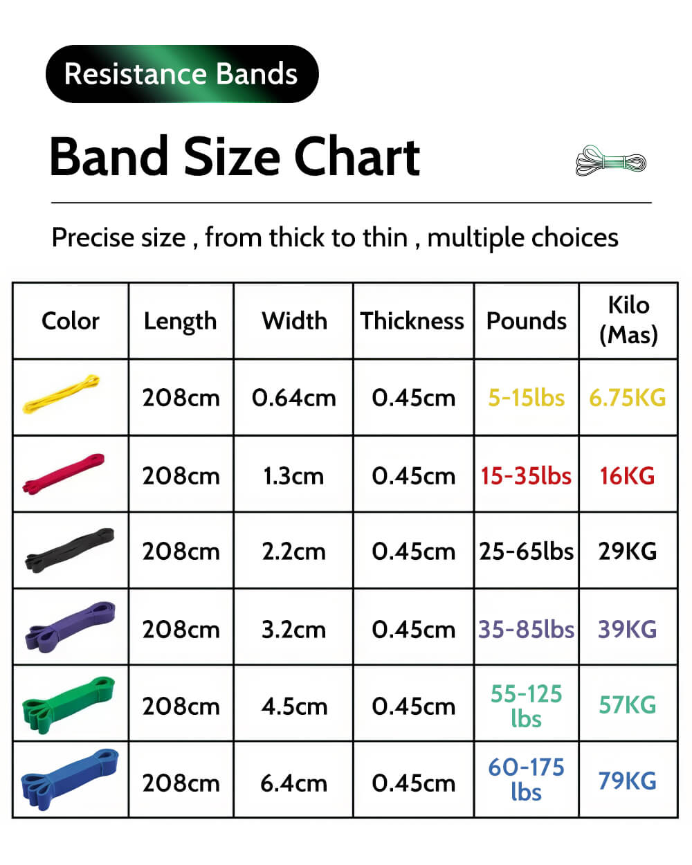 - Resistance Range: 5 – 125 lbs